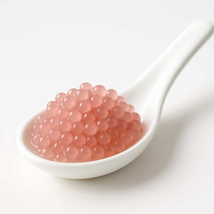 Textur: Flüssiger Kern aus Condimento Bianco mit Chriesiaroma in zarter Perlenhülle aus veganem Alginat